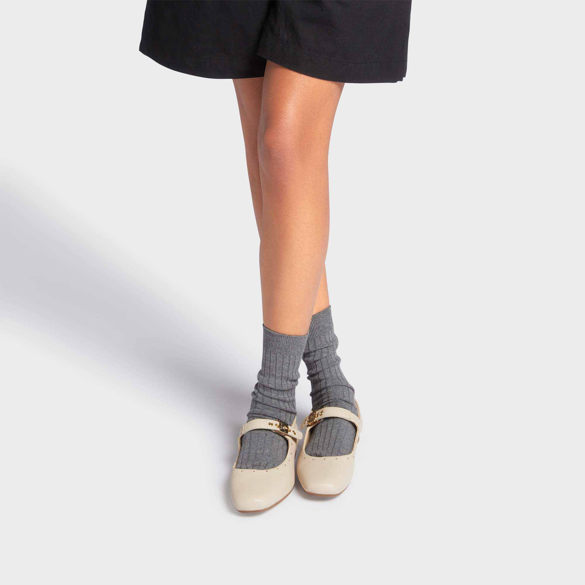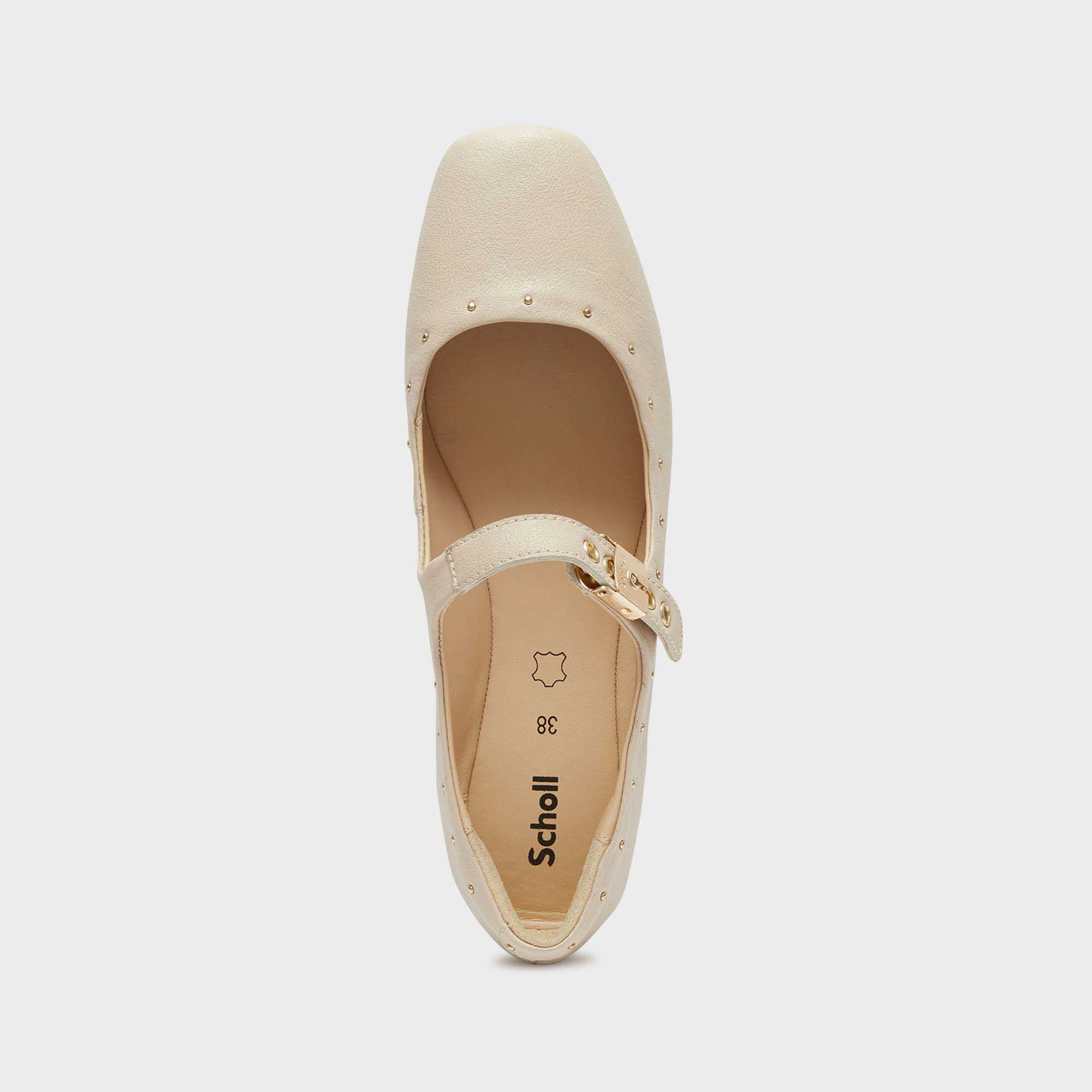 Elegant and refined, this leather ballerina features small studs along the upper profile and a strap with the iconic Scholl buckle. A stylish addition to any look, without compromising on comfort.
