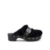 Pescura is the original wooden mule by Scholl, a true 1970s icon and must-have to give a retro touch to any look. Entirely designed and made in Italy with high quality materials such as the fully adjustable leather upper and the soft faux fur lining. In our re-interpretation of the original Pescura model, the rounded sabot-type toe gives the shoe a bold style. Made in Italy.