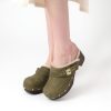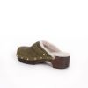 Pescura is the original wooden mule by Scholl, a true 1970s icon and must-have to give a retro touch to any look. Entirely designed and made in Italy with high quality materials such as the fully adjustable leather upper and the soft faux fur lining.In our re-interpretation of the original Pescura model, the rounded sabot-type toe gives the shoe a bold style.Made in Italy.
