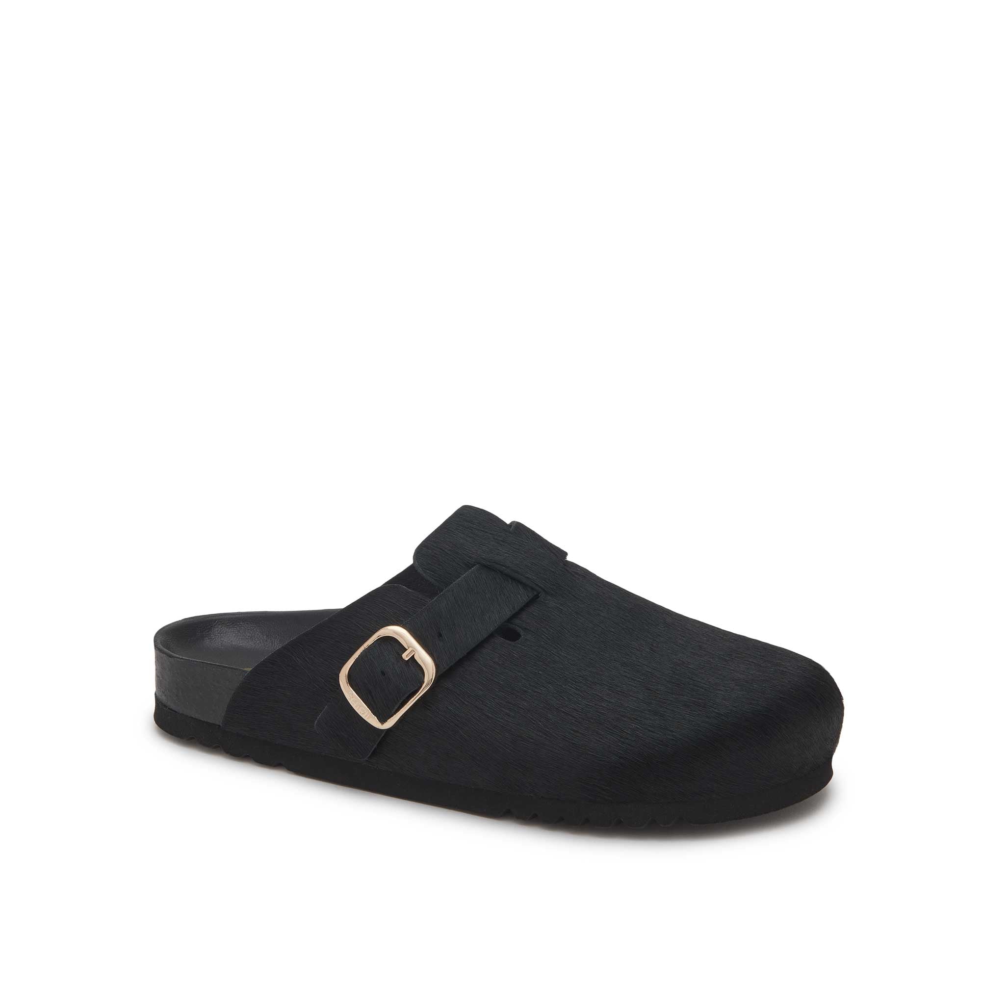 Experience the flawless fusion of fashion and functionality with Fae. This clog, crafted from luxurious pony leather, is perfect for making a bold statement this festive season. With an adjustable buckle strap, it offers superb flexibility and lightweight comfort, ensuring you can enjoy every celebration in style. Elevate your festive wardrobe with this unique clog that blend elegance and practicality, making an essential addition to your holiday ensemble.