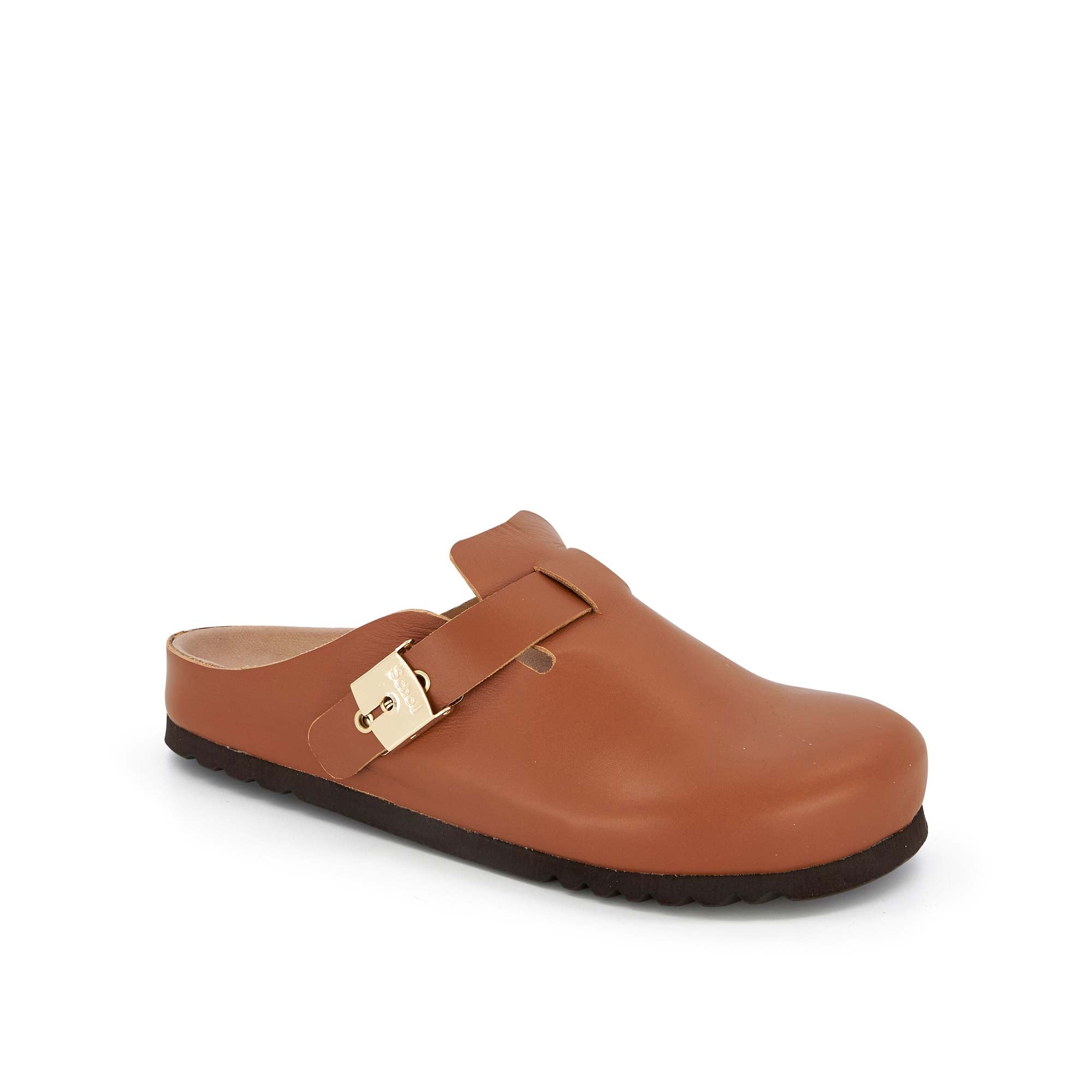 Grace is the ideal closed sabot to be worn all year round. The cork insole is lined with quality materials as is the upper. Thanks to the iconic metal buckle, this model is perfectly adjustable and suitable for all uses. Made in Spain.