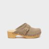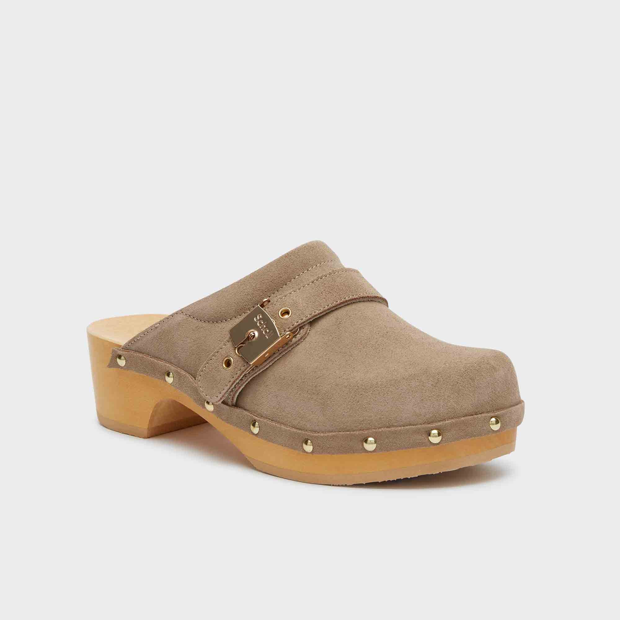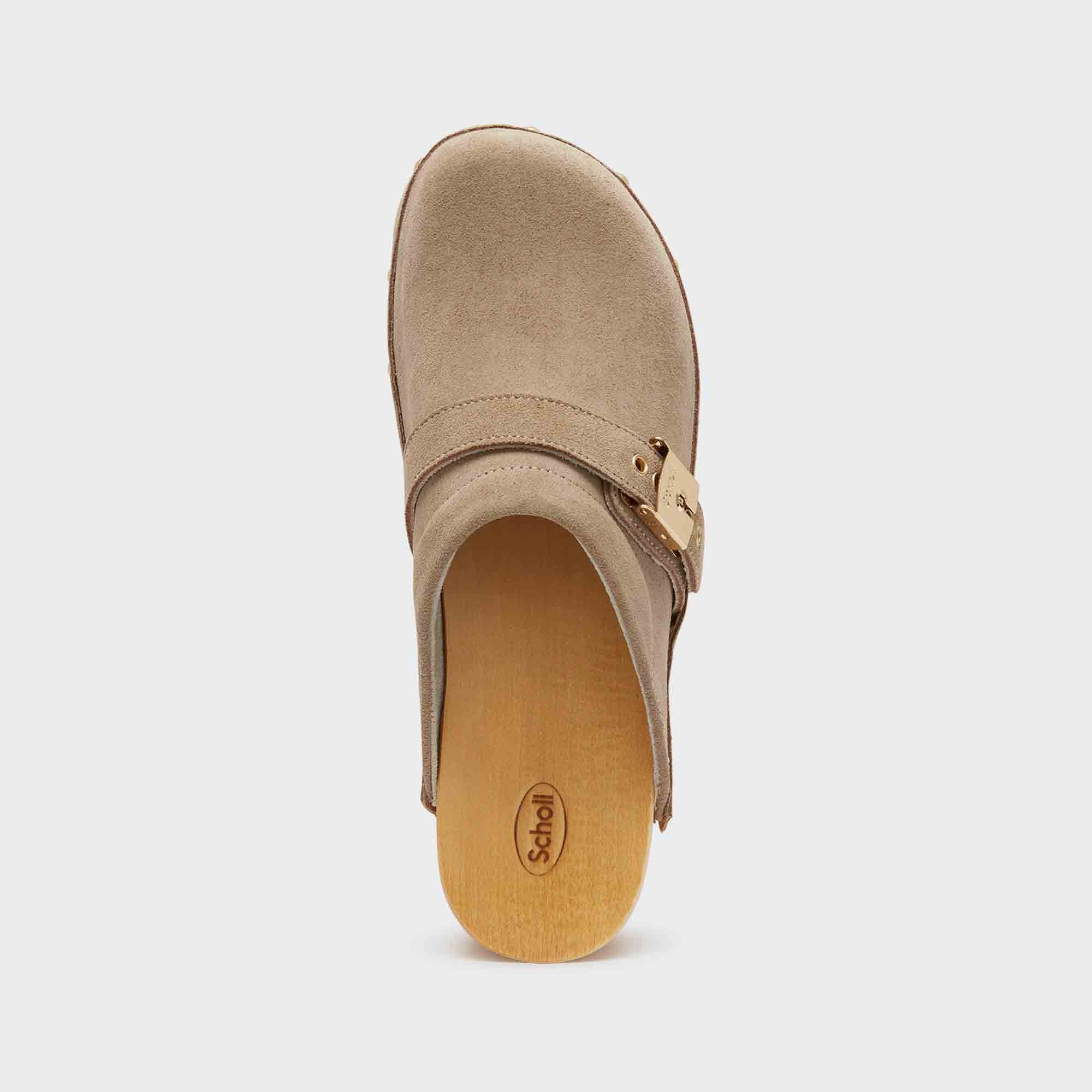 In this re-interpretation of the original Pescura footwear, the boldly coloured upper is combined with the sole to create a unique style. Pescura is the original wooden clog made by Scholl, a true icon of the 1970s and a must-have to give a retro touch to any outfit. It is designed and made entirely in Italy with high quality materials such as its pure beech wood base and fully adjustable leather upper.