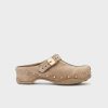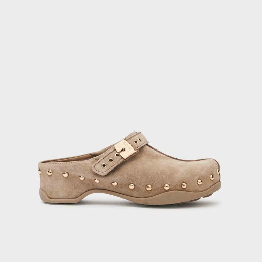 We present our latest innovation: the clog made entirely of suede, featuring a sleek and enveloping linear structure. Made entirely of high-quality suede, this clog combines minimalist elegance with exceptional comfort. Its refined design offers a snug fit that wraps around the foot, providing both support and style.
