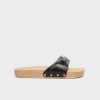 Pescura is the original wooden mule by Scholl, a true 1970s icon and must-have to give a retro touch to any look. Entirely designed and made in Italy with high quality materials such as the fully adjustable leather upper and the soft faux fur lining. In our re-interpretation of the original Pescura model, the rounded sabot-type toe gives the shoe a bold style. Made in Italy.