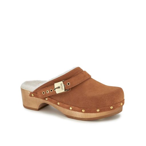 Pescura is the original wooden mule by Scholl, a true 1970s icon and must-have to give a retro touch to any look. Entirely designed and made in Italy with high quality materials such as the fully adjustable leather upper and the soft faux fur lining. In our re-interpretation of the original Pescura model, the rounded sabot-type toe gives the shoe a bold style. Made in Italy.