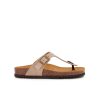 Maya, the flip-flop of the Iconic Scholl line, comes with a comfortable metal buckle that allows this footwear to be adjustable without sacrificing style. Its leather upper embellishes this model. The Softstep® footbed, with its special shape in the arch area of the foot, increases the feeling of comfort and helps to support your weight during every step. Thanks to the combination of natural cork and rubber it is both flexible and soft.Made in Spain.