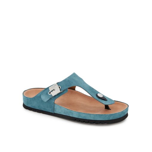 Maya, the flip-flop of the Iconic Scholl line, comes with a comfortable metal buckle that allows this footwear to be adjustable without sacrificing style. Its leather upper embellishes this model. The Softstep® footbed, with its special shape in the arch area of the foot, increases the feeling of comfort and helps to support your weight during every step. Thanks to the combination of natural cork and rubber it is both flexible and soft.Made in Spain.