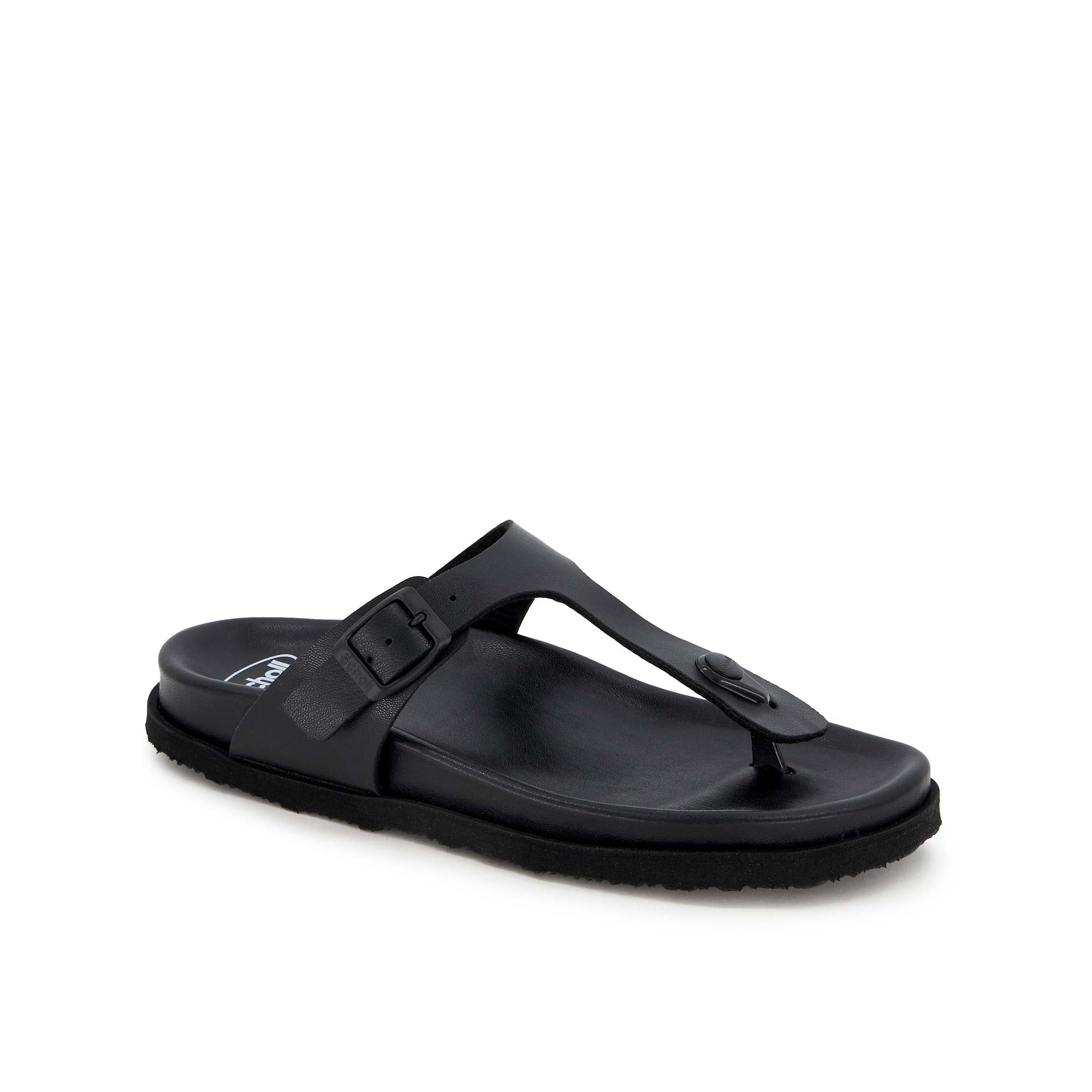 Scholl’s over line featuring synthetic leather is also drawn on this flip-flop model.Made in Spain.