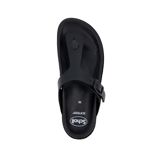 Scholl’s over line featuring synthetic leather is also drawn on this flip-flop model.Made in Spain.