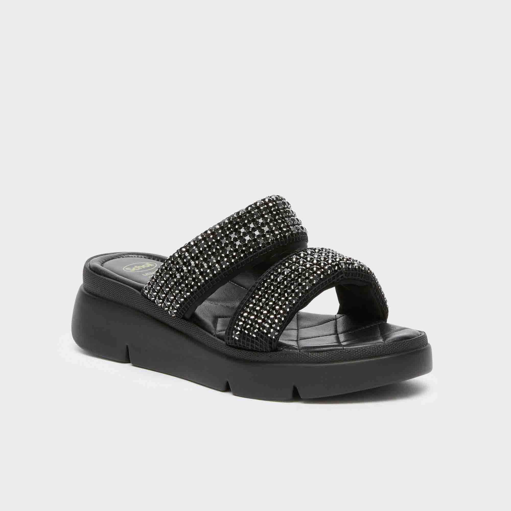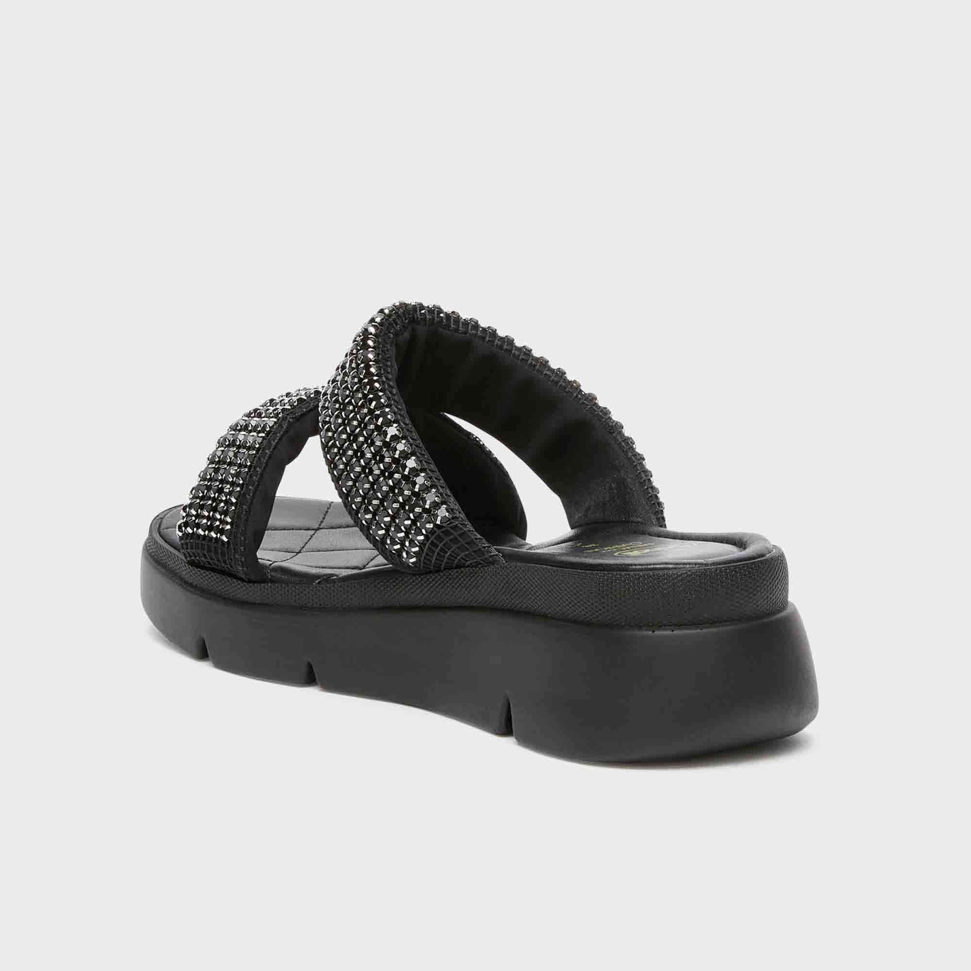 Add a touch of sparkle to your summer look with Bali Strass, the sandal that combines glamour and comfort. The neoprene upper, enriched with sparkling rhinestones, gently wraps the foot with elegance. Thanks to Scholl Memory Cushion® technology, the footbed evenly distributes pressure, providing relief and support throughout the day. The lightweight and flexible sole completes the design, making Bali Strass perfect for any summer occasion.