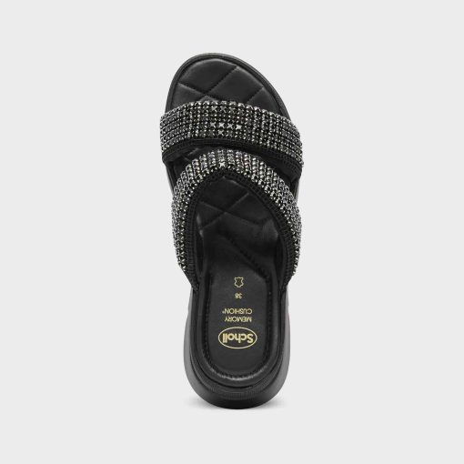 Add a touch of sparkle to your summer look with Bali Strass, the sandal that combines glamour and comfort. The neoprene upper, enriched with sparkling rhinestones, gently wraps the foot with elegance. Thanks to Scholl Memory Cushion® technology, the footbed evenly distributes pressure, providing relief and support throughout the day. The lightweight and flexible sole completes the design, making Bali Strass perfect for any summer occasion.