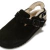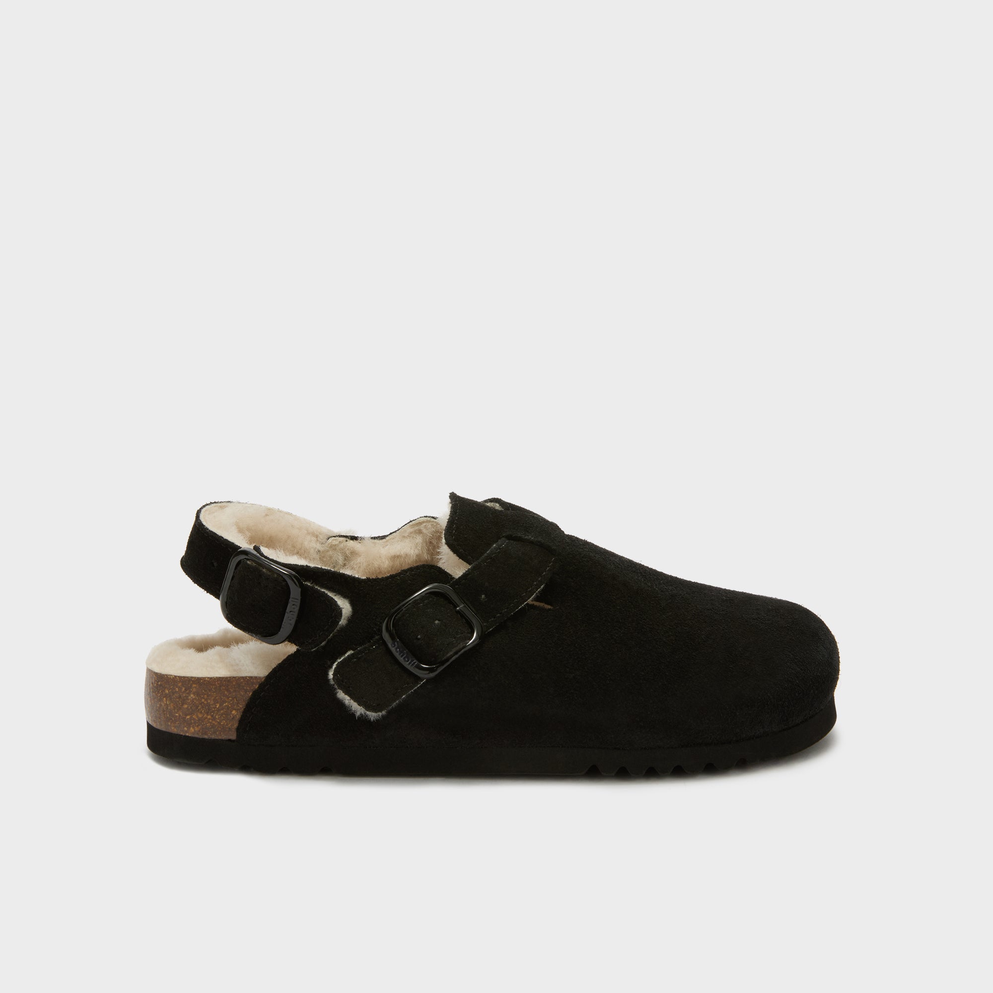 Featuring a modern design, these mules are perfect for those looking to make a bold statement with their footwear. Crafted with a premium suede upper and lined with soft faux fur, they offer both standout style and cozy warmth. The addition of a practical backstrap ensures a secure fit, while the adjustable buckle, lightweight construction, and flexible sole provide all-day comfort.