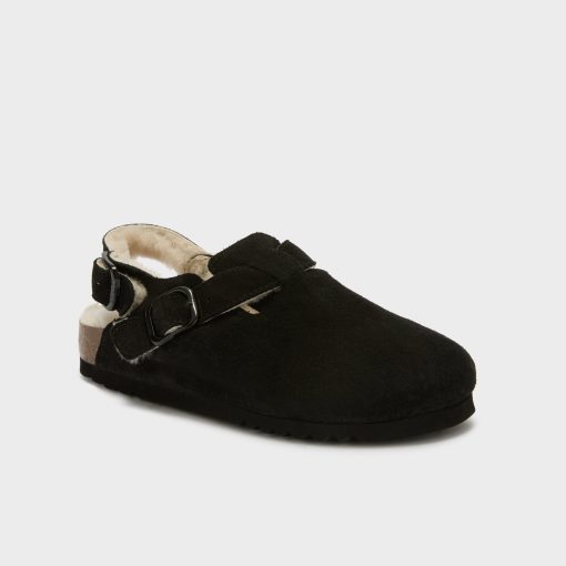 Featuring a modern design, these mules are perfect for those looking to make a bold statement with their footwear. Crafted with a premium suede upper and lined with soft faux fur, they offer both standout style and cozy warmth. The addition of a practical backstrap ensures a secure fit, while the adjustable buckle, lightweight construction, and flexible sole provide all-day comfort.