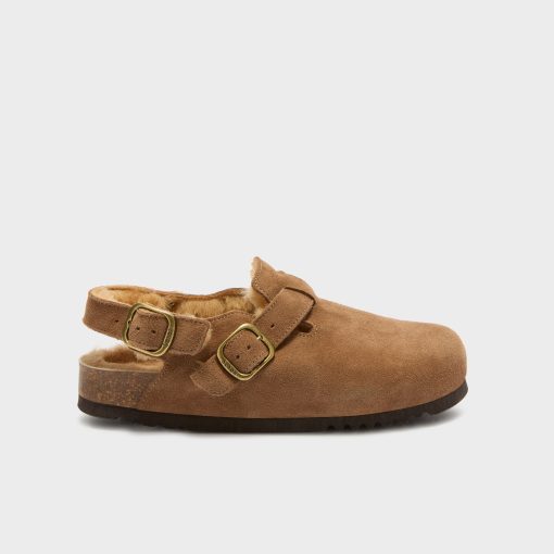 Featuring a modern design, these mules are perfect for those looking to make a bold statement with their footwear. Crafted with a premium suede upper and lined with soft faux fur, they offer both standout style and cozy warmth. The addition of a practical backstrap ensures a secure fit, while the adjustable buckle, lightweight construction, and flexible sole provide all-day comfort.