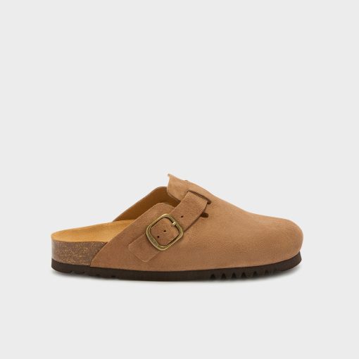 Crafted in soft suede for a naturally refined look, this mule offers comfort and versatility in a minimalist silhouette. The adjustable strap with a vintage-finish metal buckle allows for a secure, customized fit, while the anatomical cork-latex footbed supports the foot’s natural shape.