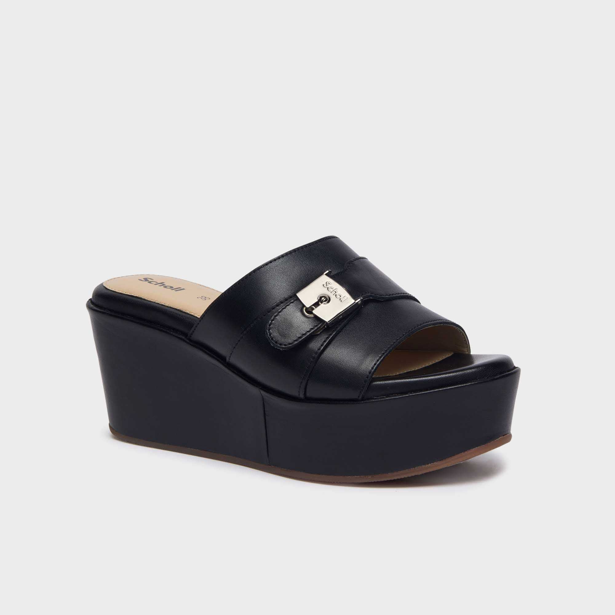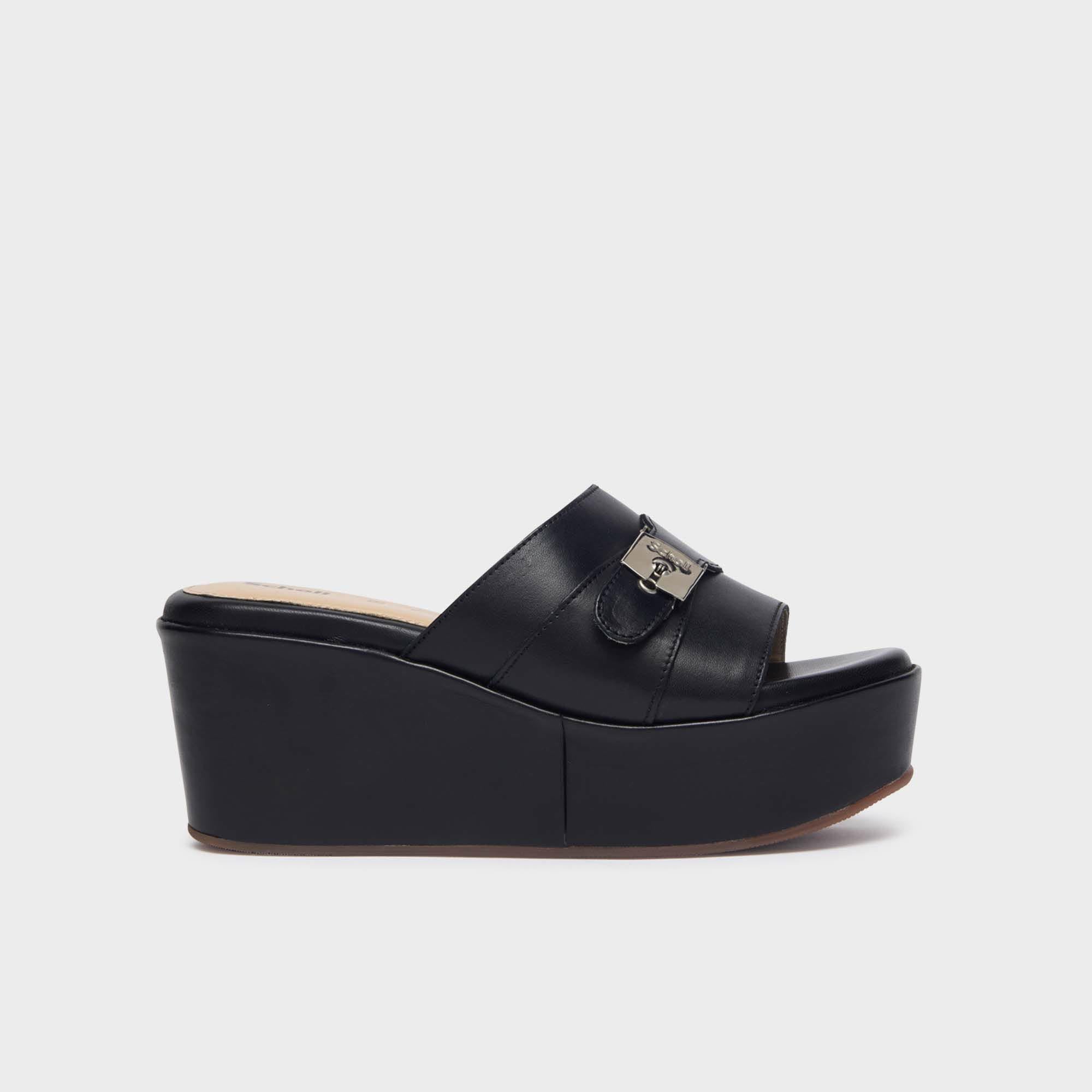 This wedge sandal features a single strap at the front that wraps around the foot in an elegant and comfortable way. The minimalist design with just one strap offers a refined and modern look, while the high wedge ensures excellent support.