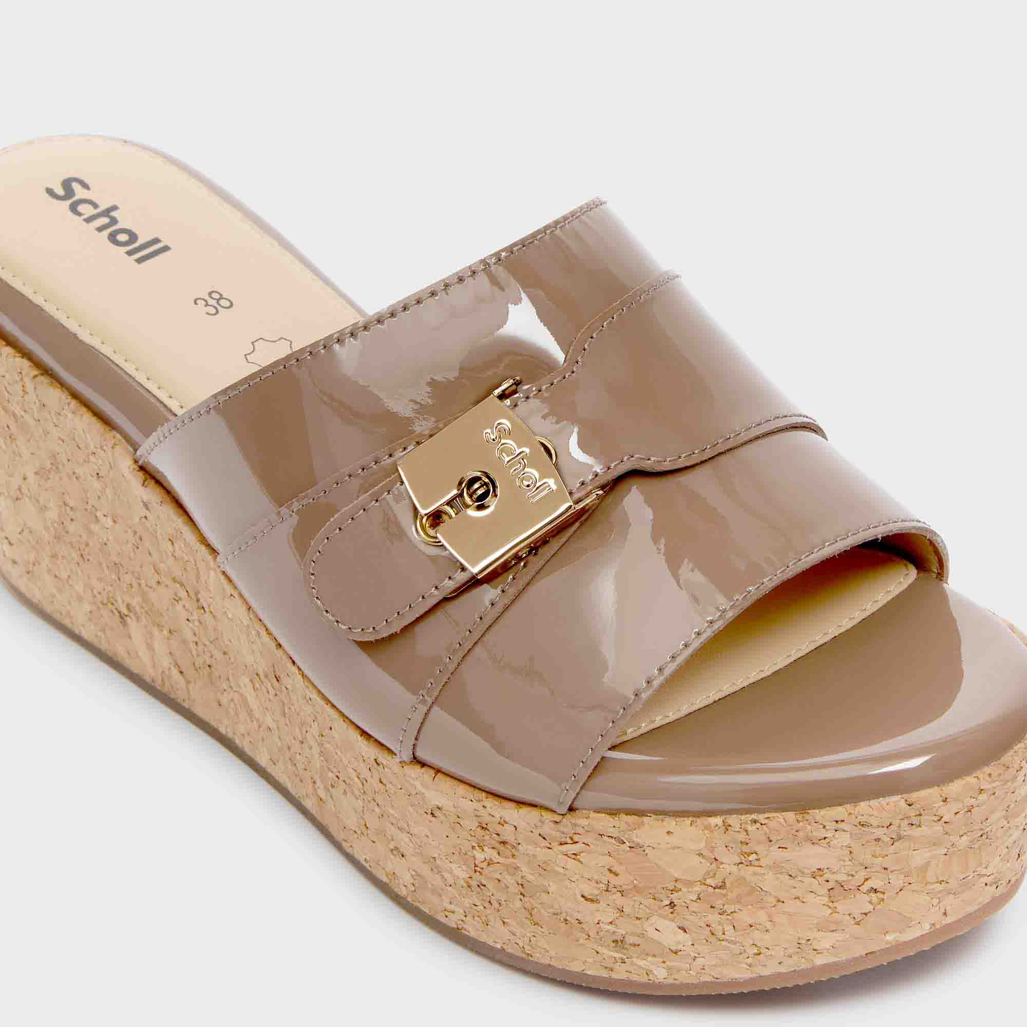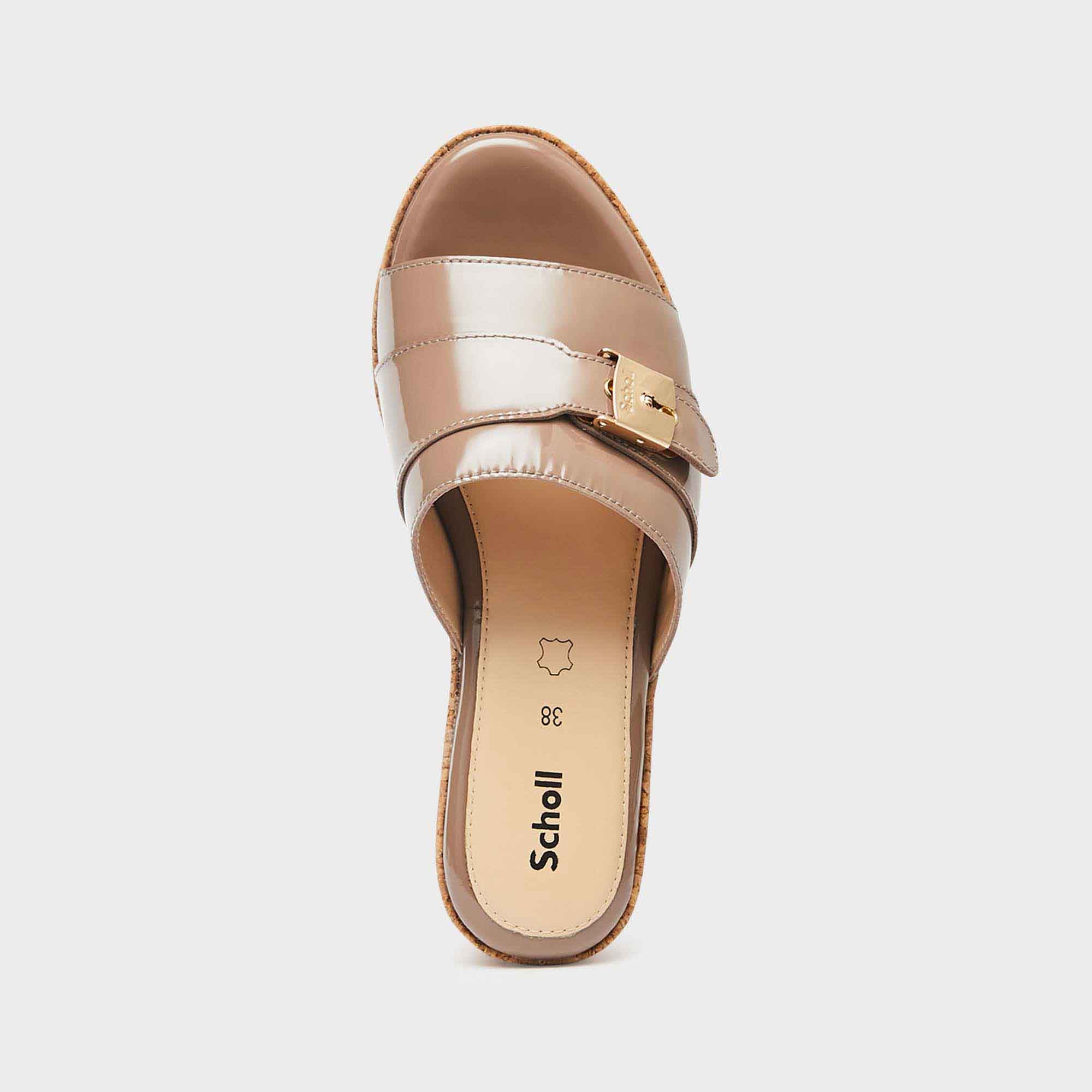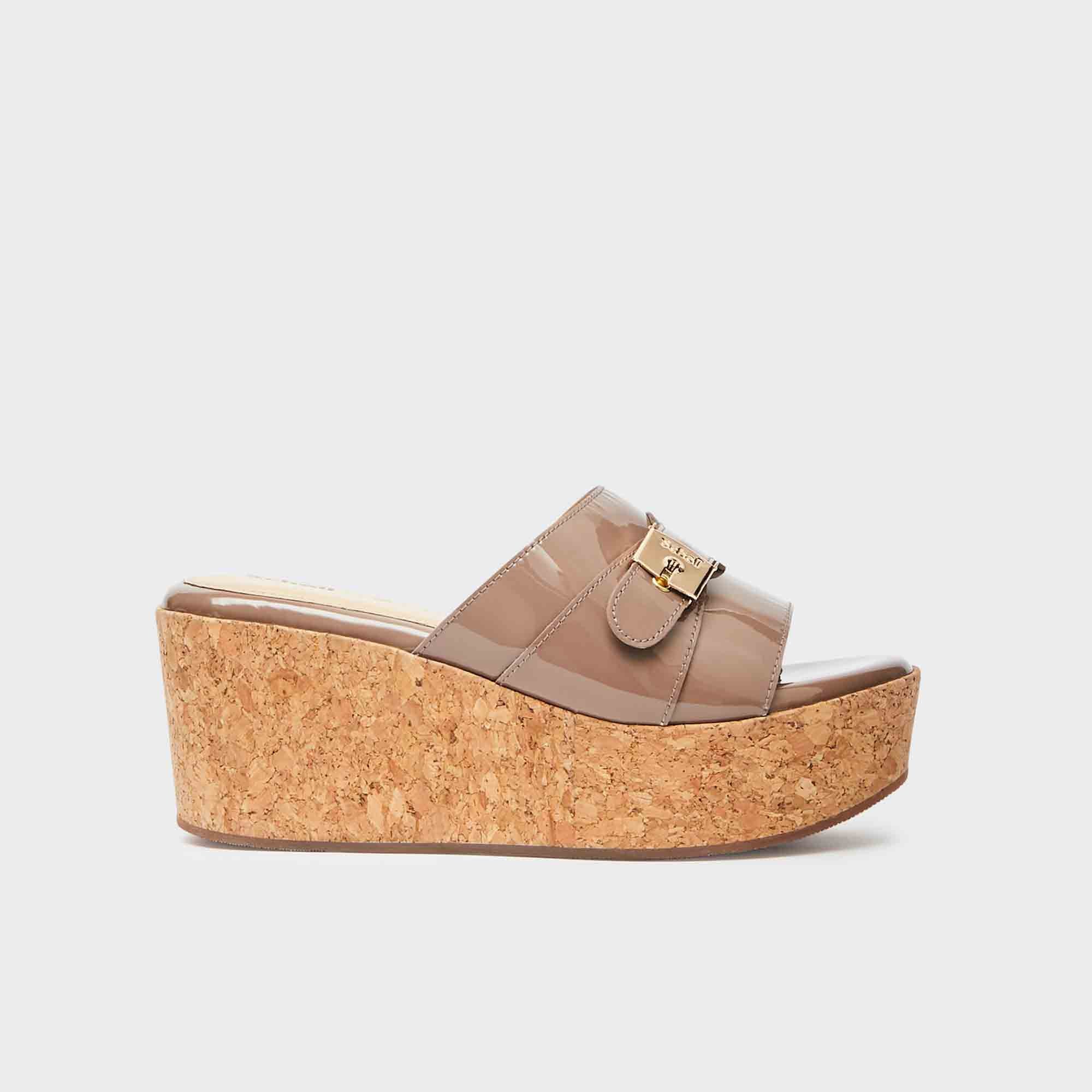 This wedge sandal features a single strap at the front that wraps around the foot in an elegant and comfortable way. The minimalist design with just one strap offers a refined and modern look, while the high wedge ensures excellent support.