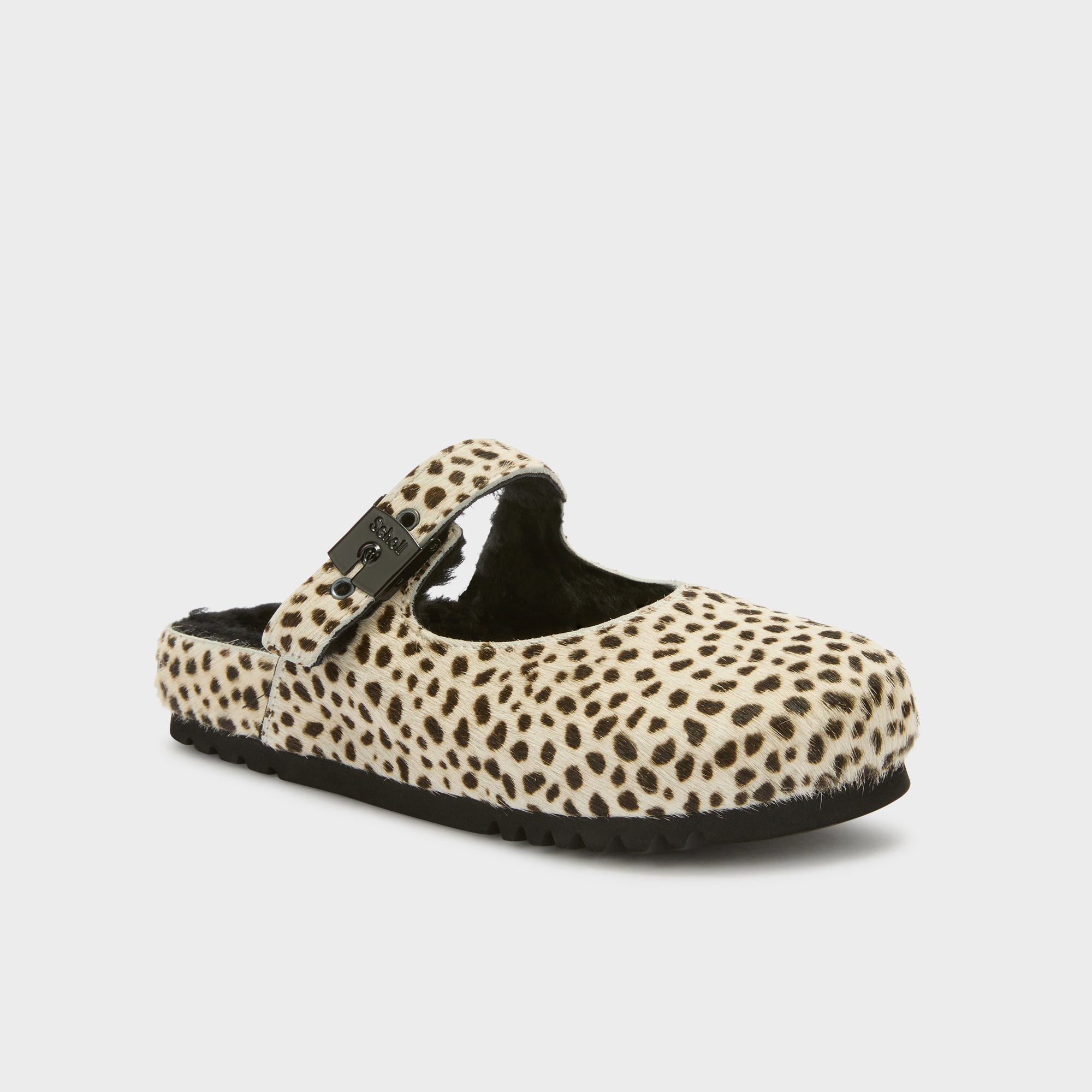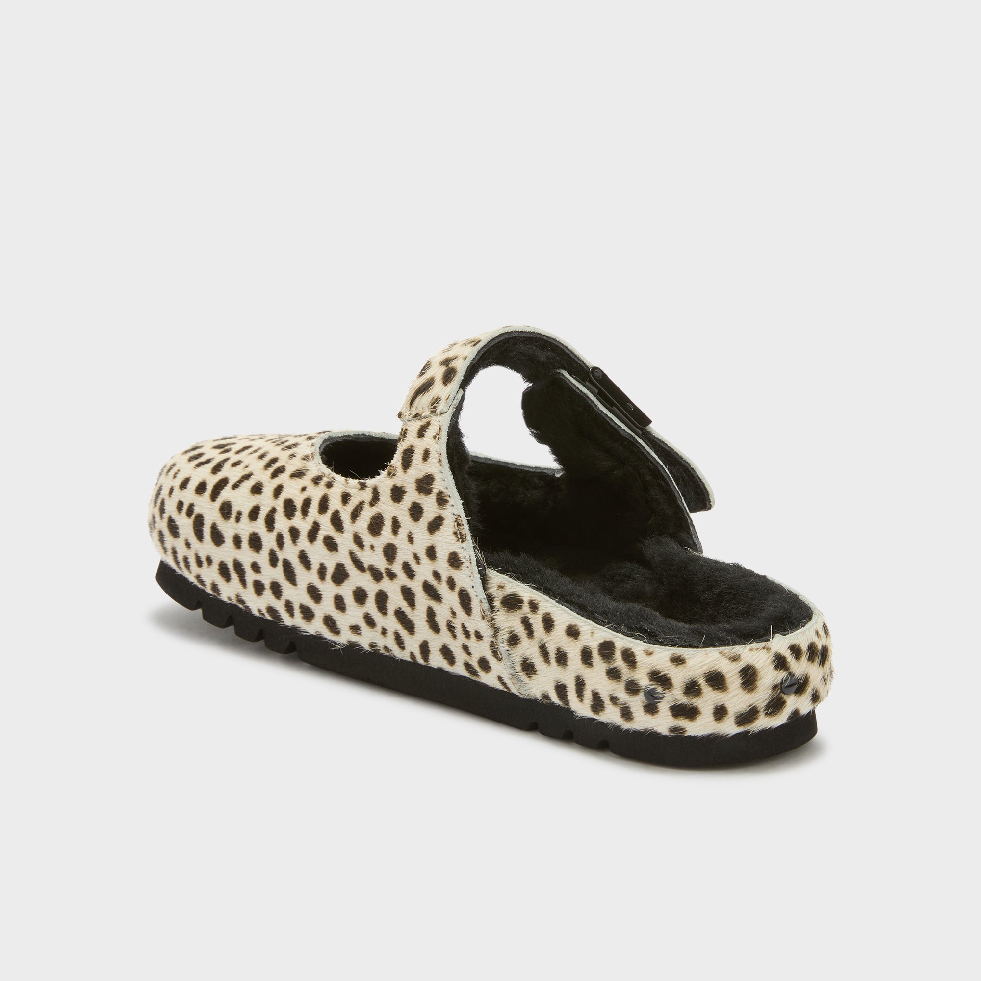 Crafted in pony leather, this stylish slip-on combines eye-catching design with all-day comfort. The cozy shearling lining adds warmth and softness, while the adjustable strap with tonal metal buckle provides a secure and personalized fit.