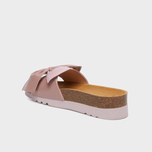 The Bowy sandal stands out with its oversized bow on the front, adding a romantic touch to its essential design. Made from synthetic fabric, it features Scholl Bioprint® technology with a cork and rubber footbed, designed to keep the foot in the correct position. The new, even softer formula ensures an exceptionally comfortable walking experience. Made in Spain.