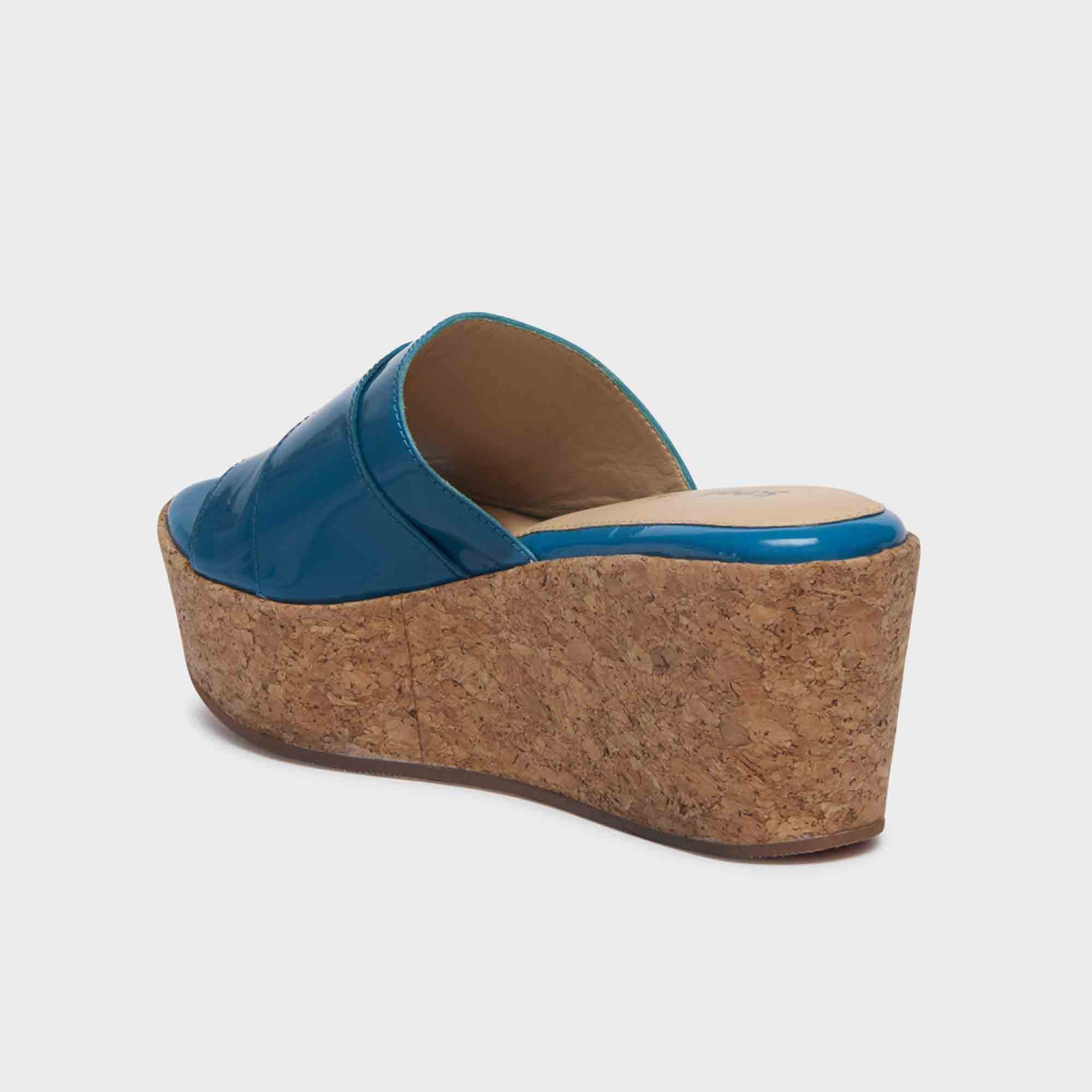 This wedge sandal features a single strap at the front that wraps around the foot in an elegant and comfortable way. The minimalist design with just one strap offers a refined and modern look, while the high wedge ensures excellent support.