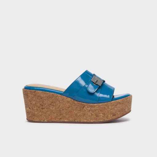 This wedge sandal features a single strap at the front that wraps around the foot in an elegant and comfortable way. The minimalist design with just one strap offers a refined and modern look, while the high wedge ensures excellent support.