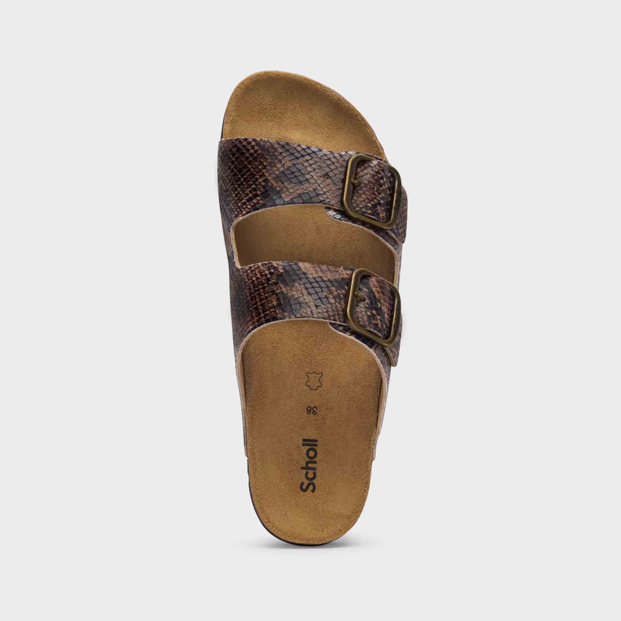 Josephine is the perfect slipper for those who love a simple and super comfortable style. The two straps with the classic Scholl buckle make the shoe adjustable for optimal comfort. The Softstep® footbed, with its unique shape in the arch area, enhances comfort and helps support weight with every step. Made with a combination of natural cork and rubber, it is flexible and soft.
