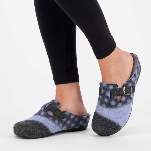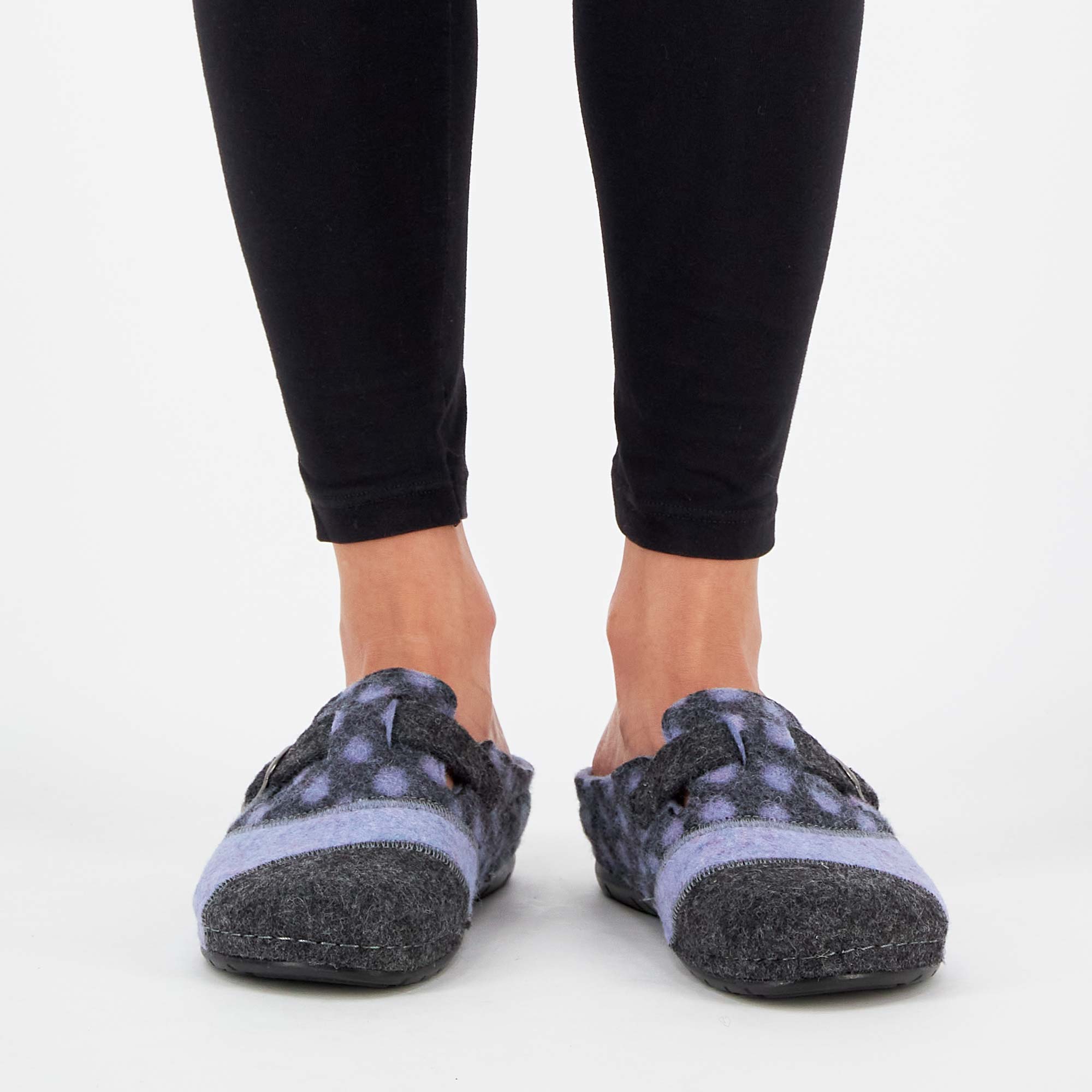 Slipper made by wool with a buckle that guarantees a perfect adjustability and characterized by a Memory Cushion insole.