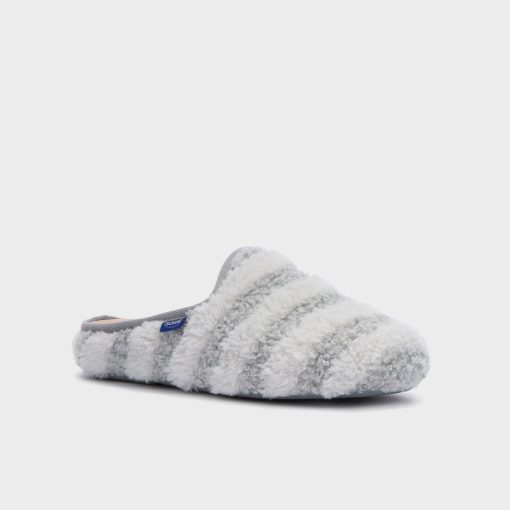 This cozy slipper with striped faux fur is perfect for everyday comfort at home. The slip-on design makes it easy to wear, while the Bioprint® footbed helps support the arch and keeps the foot in the right position for better posture.