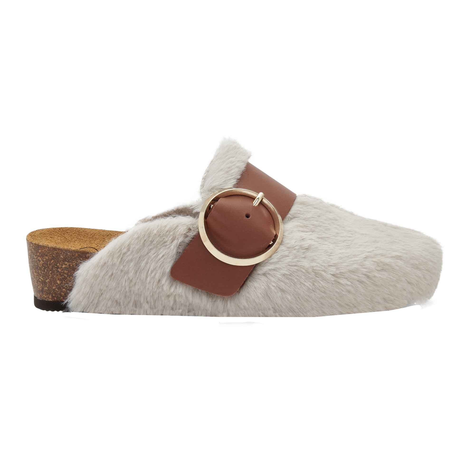The new Monique model is a sabot with a perfect balance of contemporary design and comfort. The warm faux fur upper is enriched by a precious round buckle with a contrasting strap. The Softstep® footbed, with its special shaped arch, increases the feeling of comfort and helps to support the weight with every step you take.