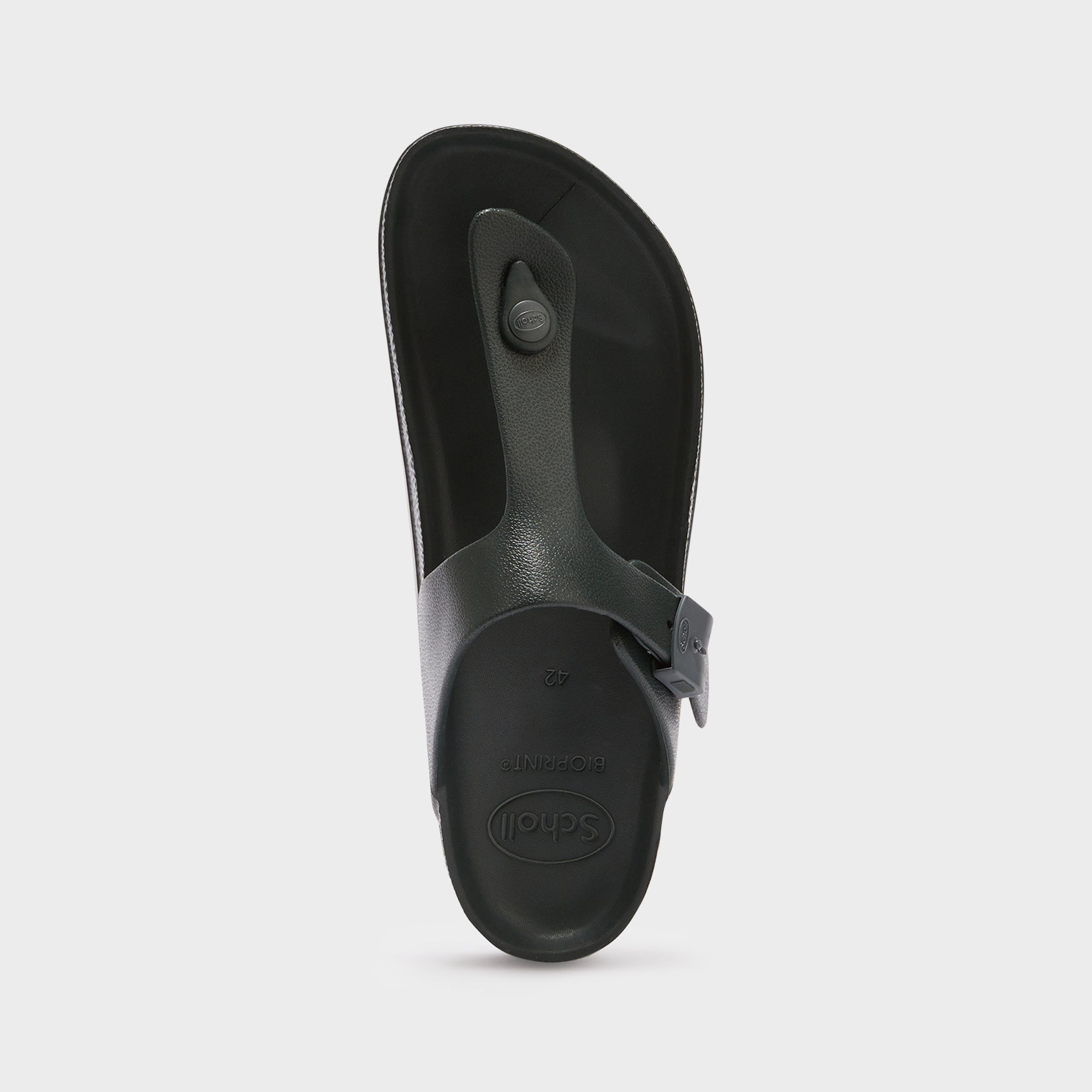Bahia is Scholl’s flip-flop with a contemporary look that is extremely light and flexible. The footbed and the inside of the upper have a ‘sand effect’ texture to ensure a better grip even on wet feet. Scholl Bahia features the original Bioprint® anatomy that keeps the foot in the correct position, and the iconic Scholl® buckle makes the upper adjustable. Thanks to its special material, Scholl Bahia dries very quickly and is therefore also suitable for swimming pools, spas and the gym. The Scholl Bioprint® footbed now has a soft core that will give your walk even more comfort thanks to its new formula.