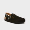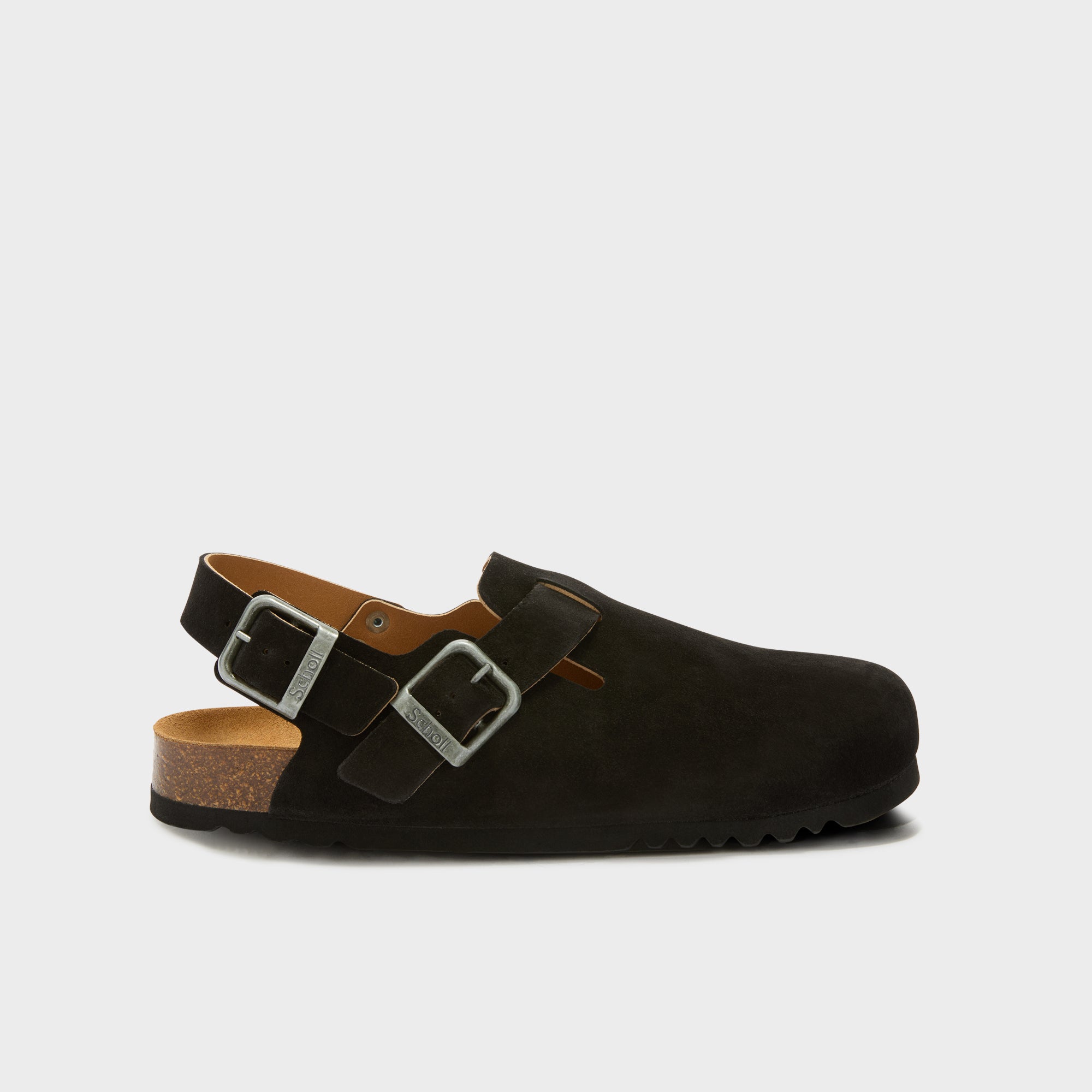 Made from suede, it features two adjustable buckled straps including a functional back strap for added stability and secure fit. The anatomical cork-latex footbed ensures ergonomic comfort, while the treaded rubber sole offers reliable grip.