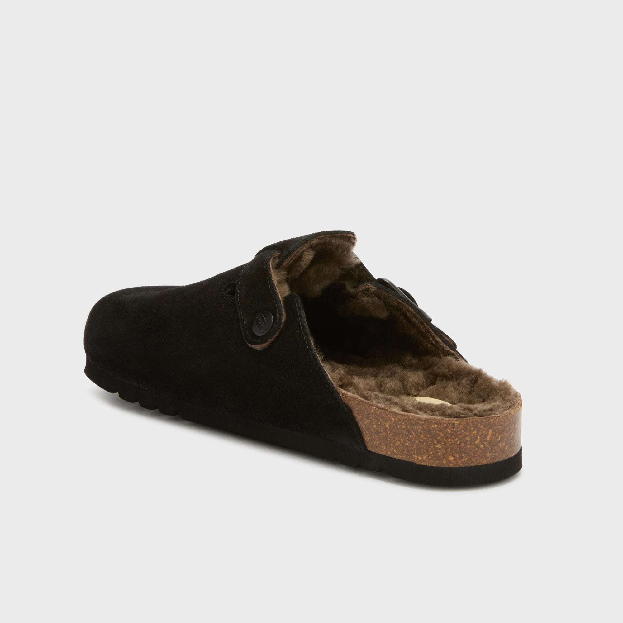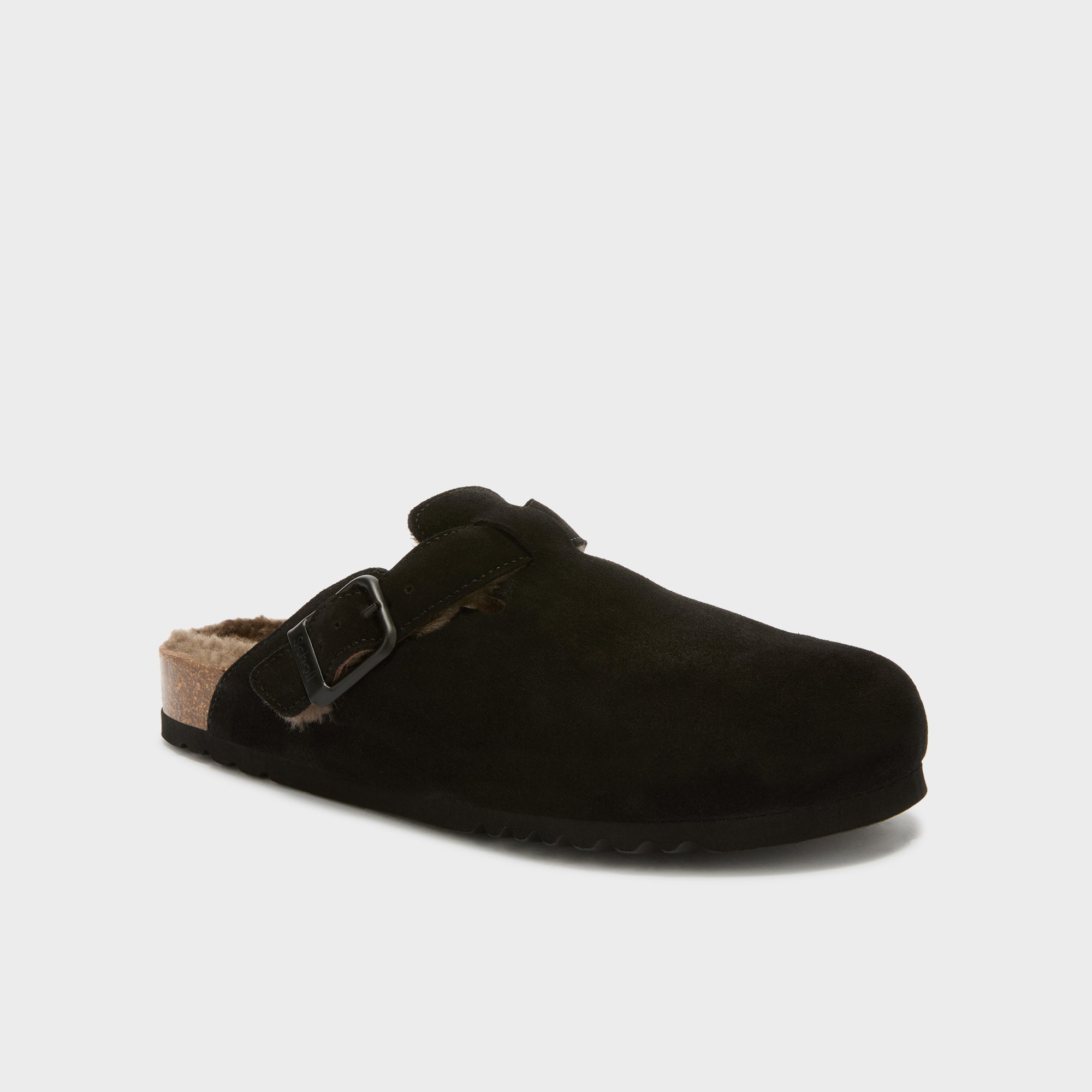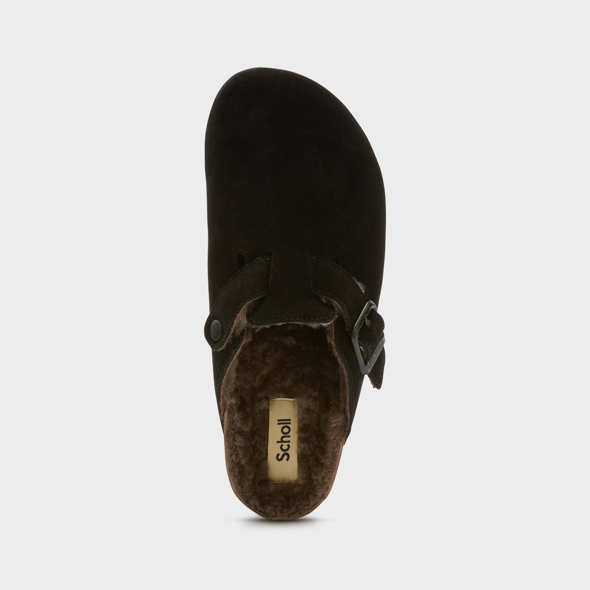 This men’s clog by Scholl combines a soft suede upper with a warm shearling lining for exceptional comfort and insulation. The adjustable strap with a tonal buckle allows for a secure, personalized fit, while the anatomical cork-latex footbed supports the foot’s natural alignment. A treaded rubber outsole ensures grip and durability, making this style a cozy and practical choice for daily wear.