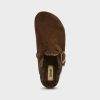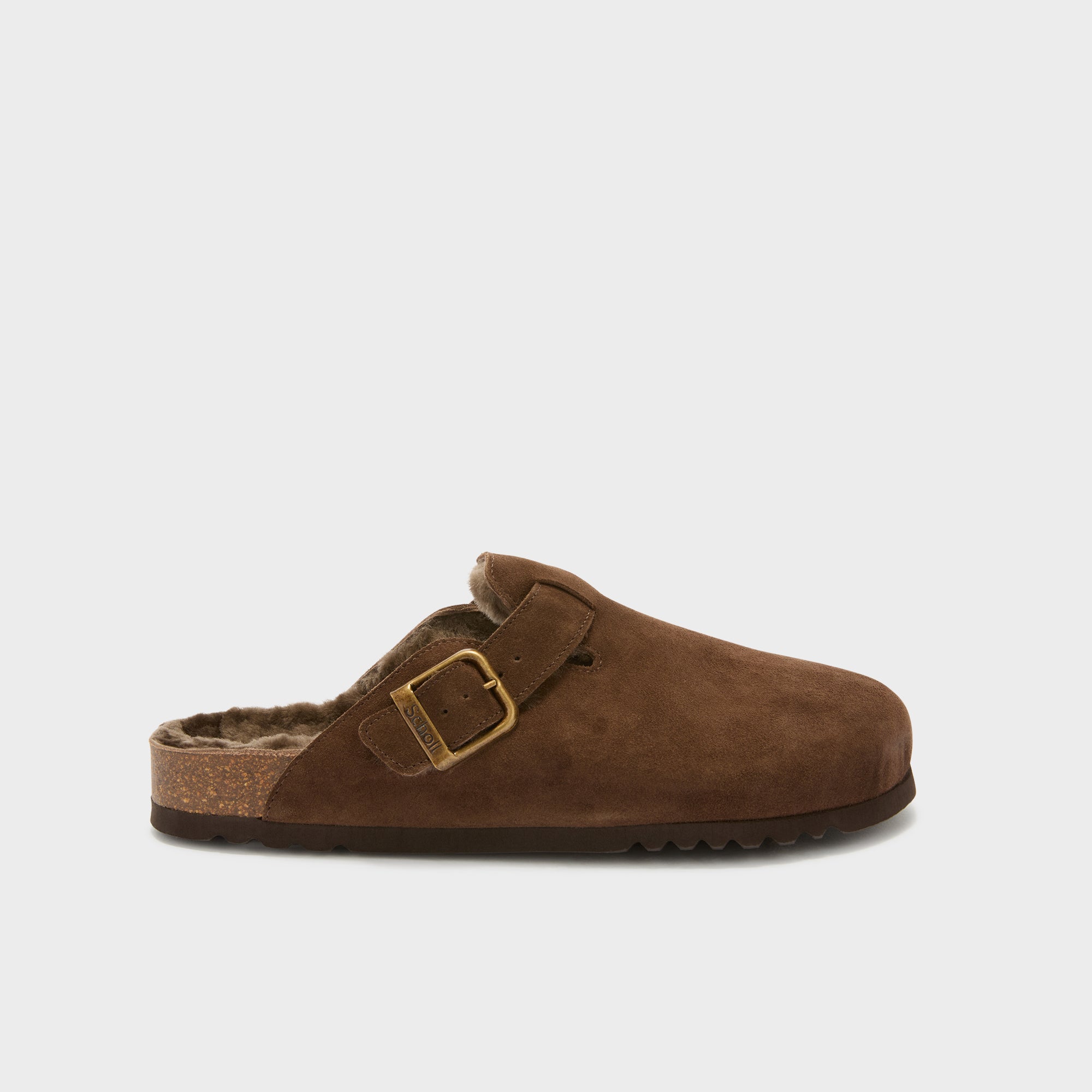 This men’s clog by Scholl combines a soft suede upper with a warm shearling lining for exceptional comfort and insulation. The adjustable strap with a tonal buckle allows for a secure, personalized fit, while the anatomical cork-latex footbed supports the foot’s natural alignment. A treaded rubber outsole ensures grip and durability, making this style a cozy and practical choice for daily wear.