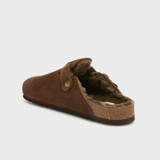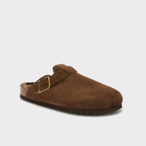 This men’s clog by Scholl combines a soft suede upper with a warm shearling lining for exceptional comfort and insulation. The adjustable strap with a tonal buckle allows for a secure, personalized fit, while the anatomical cork-latex footbed supports the foot’s natural alignment. A treaded rubber outsole ensures grip and durability, making this style a cozy and practical choice for daily wear.