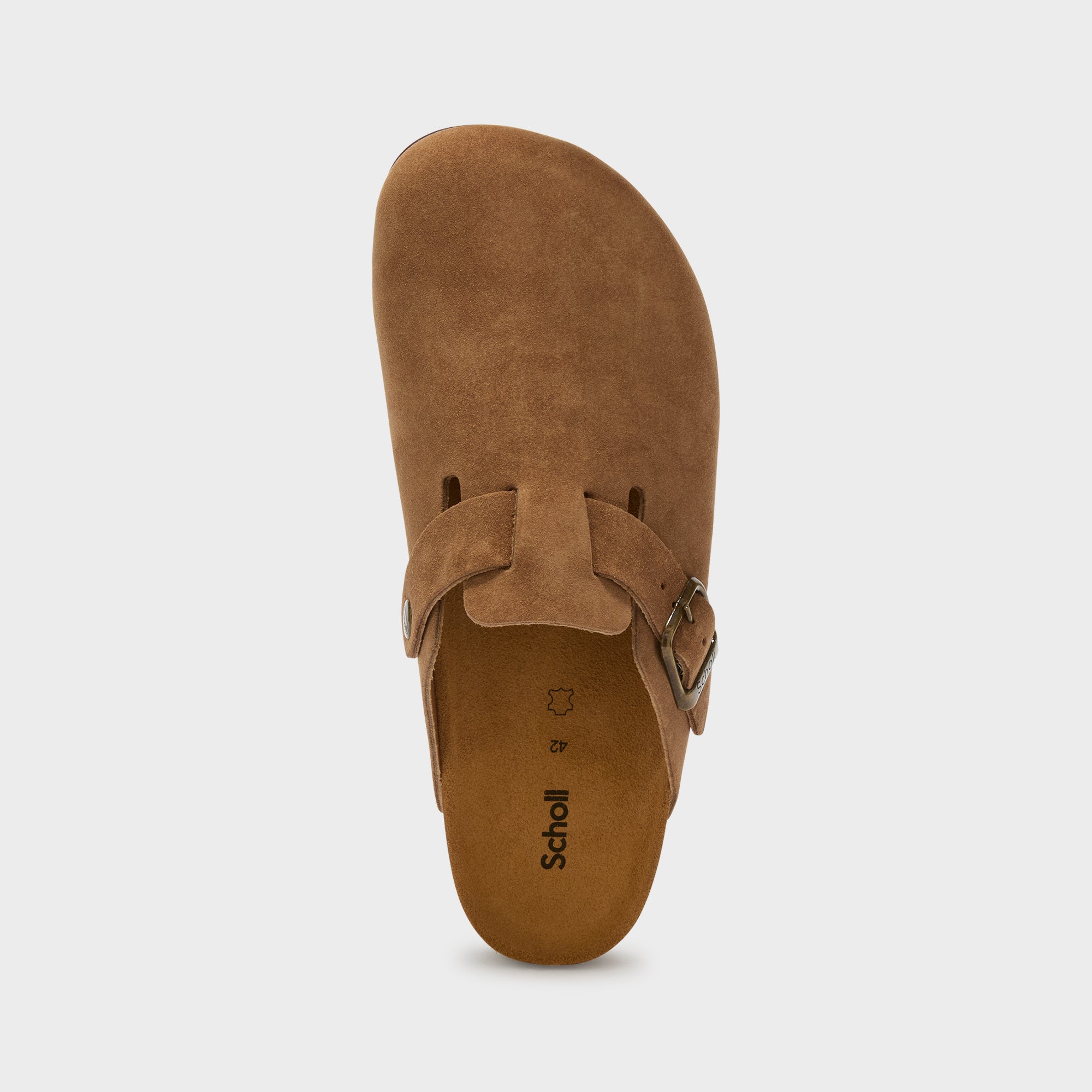 This Scholl men’s clog combines essential comfort with a clean, understated look. Made from soft suede, the upper offers a warm and breathable feel ideal for everyday use. The adjustable strap with tonal buckle ensures a secure, personalized fit, while the anatomical cork-latex footbed supports the natural shape of the foot.
