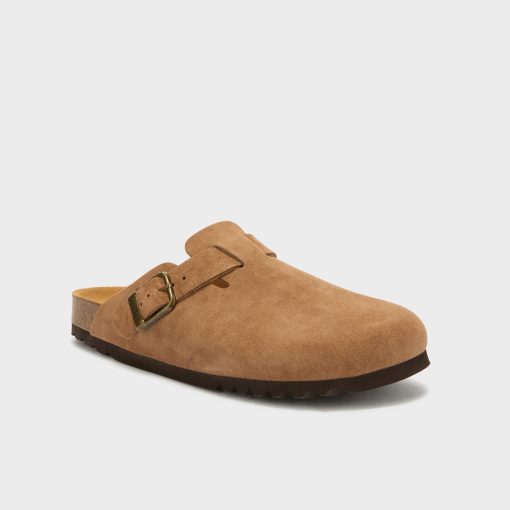 This Scholl men’s clog combines essential comfort with a clean, understated look. Made from soft suede, the upper offers a warm and breathable feel ideal for everyday use. The adjustable strap with tonal buckle ensures a secure, personalized fit, while the anatomical cork-latex footbed supports the natural shape of the foot.