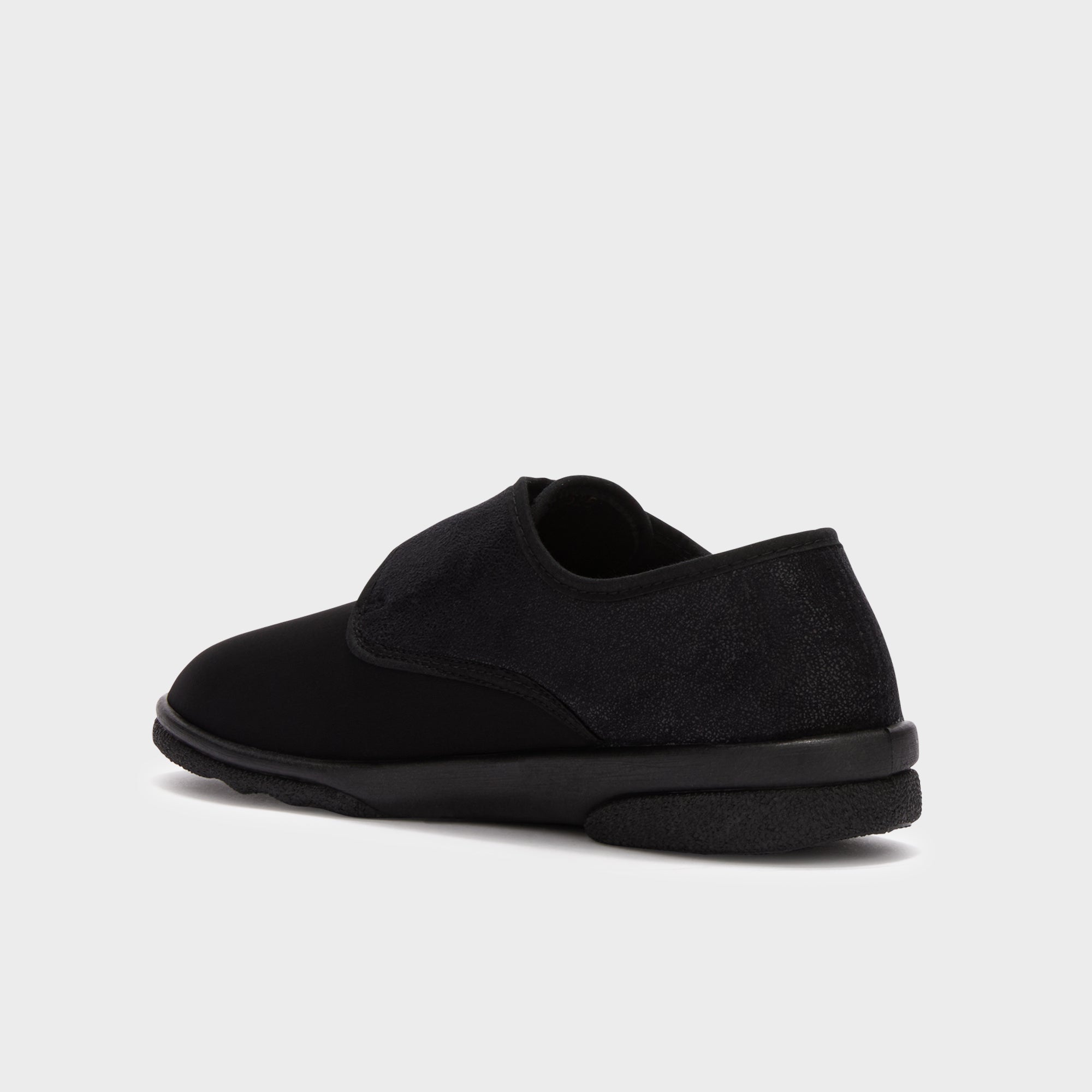 Elevate your comfort with our men’s slipper crafted from elastomeric fabric, featuring a convenient strap closure for a secure fit. The removable Memory Cushion insole ensures effective pressure redistribution, offering optimal comfort and support.